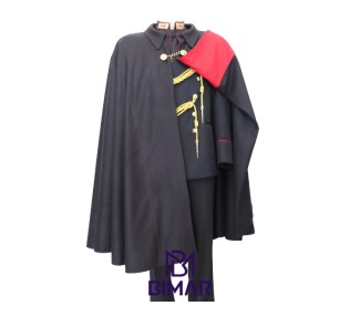 Mantella realizzabile in tessuto panno pura lana blu con fodera interna e chiusura a catena con borchie dorate. Taglia unica. ARTICOLI DA REALIZZARE SU COMMISIONE.