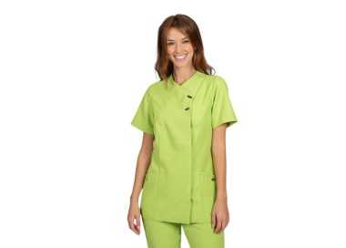 Casacca Elena mezza manica, realizzata in tessuto 100% poliestere microfibra, tessuto dalle proprietà antibatteriche, non necessita di stiraggio e asciuga facilmente.