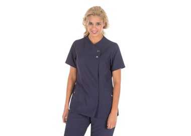 Casacca Elena mezza manica, realizzata in tessuto 100% poliestere microfibra, tessuto dalle proprietà antibatteriche, non necessita di stiraggio e asciuga facilmente.