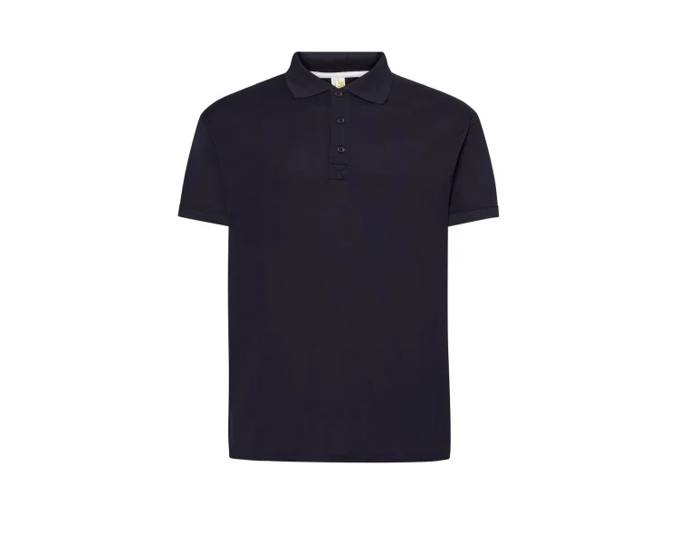 Polo da uomo in Piquet sportivo colore Blu Navy a manica corta con abbottonatura a tre bottoni, cuciture a contrasto e spacchi laterali.